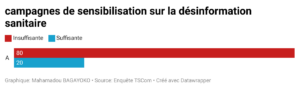 En effet, 80 % des répondants estiment que les campagnes de sensibilisation actuelles sur la désinformation sanitaire sont insuffisantes, notamment en milieu rural. Pour y remédier, ils suggèrent de multiplier les efforts en matière de sensibilisation, d’éducation aux médias et de collaboration avec des influenceurs locaux pour rendre les informations de santé plus engageantes et accessibles.
